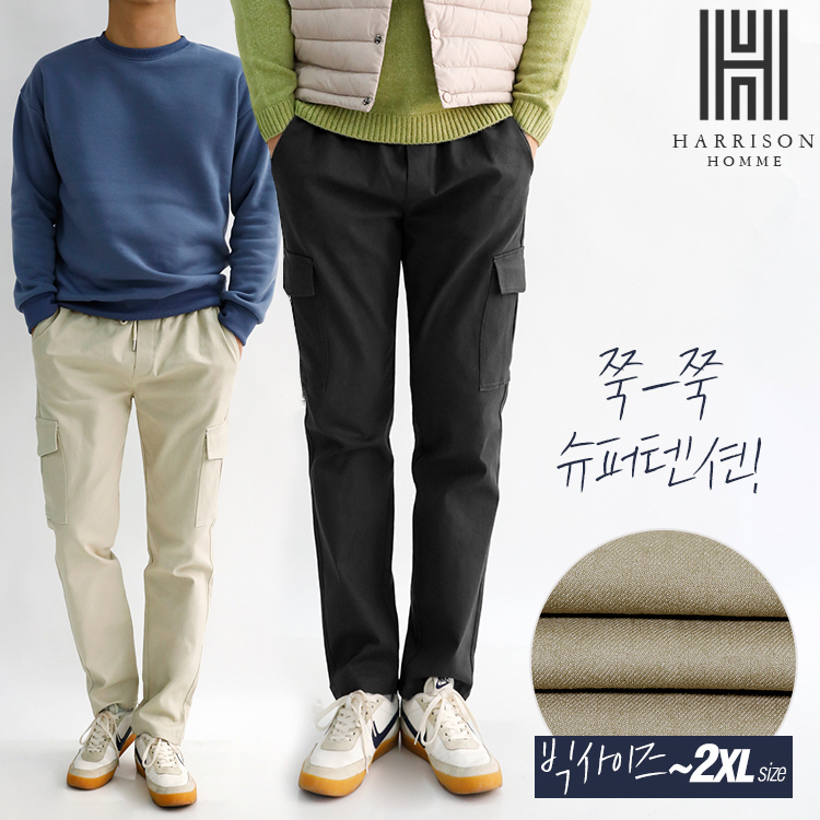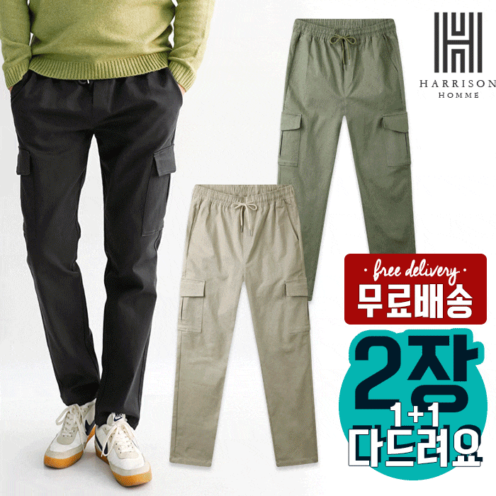 [해리슨] 1+1 2SET 빅사이즈 편안한 스판! 7컬러 밴딩 카고 면바지 JIM1227