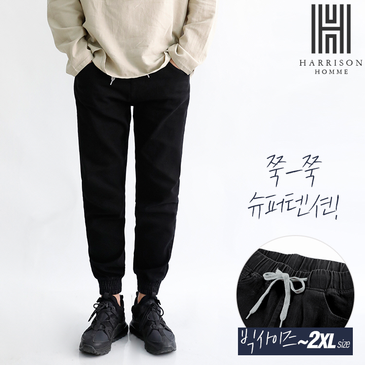 [해리슨] 빅사이즈 밴딩 조거 블랙 팬츠 BNJ1115