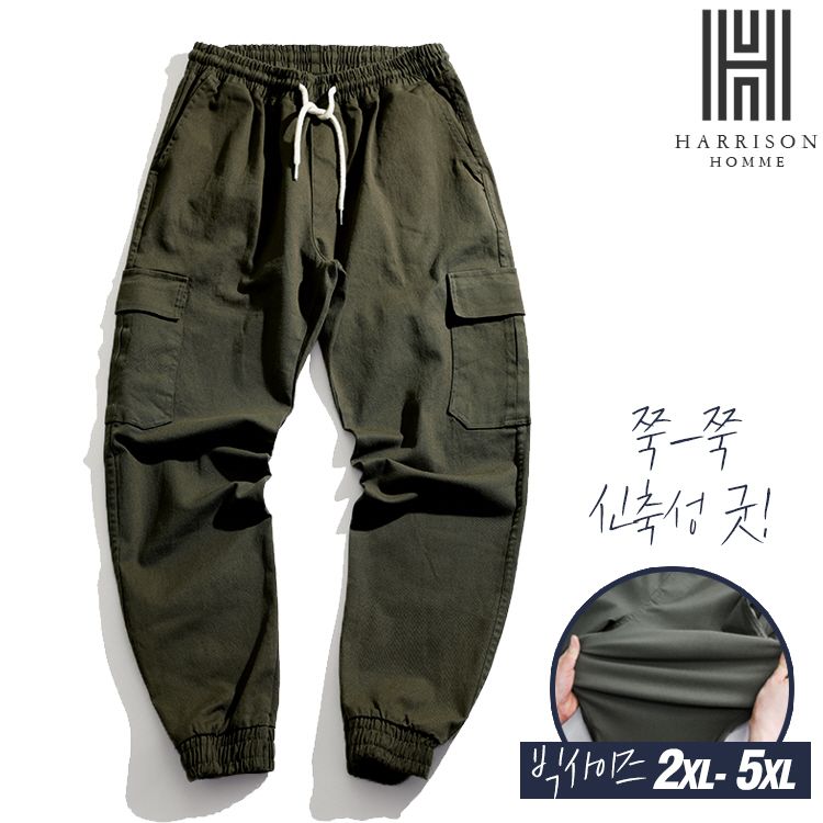 [해리슨] 빅사이즈 슬랙스 밴딩 카고 조거 스판 팬츠 DND1063